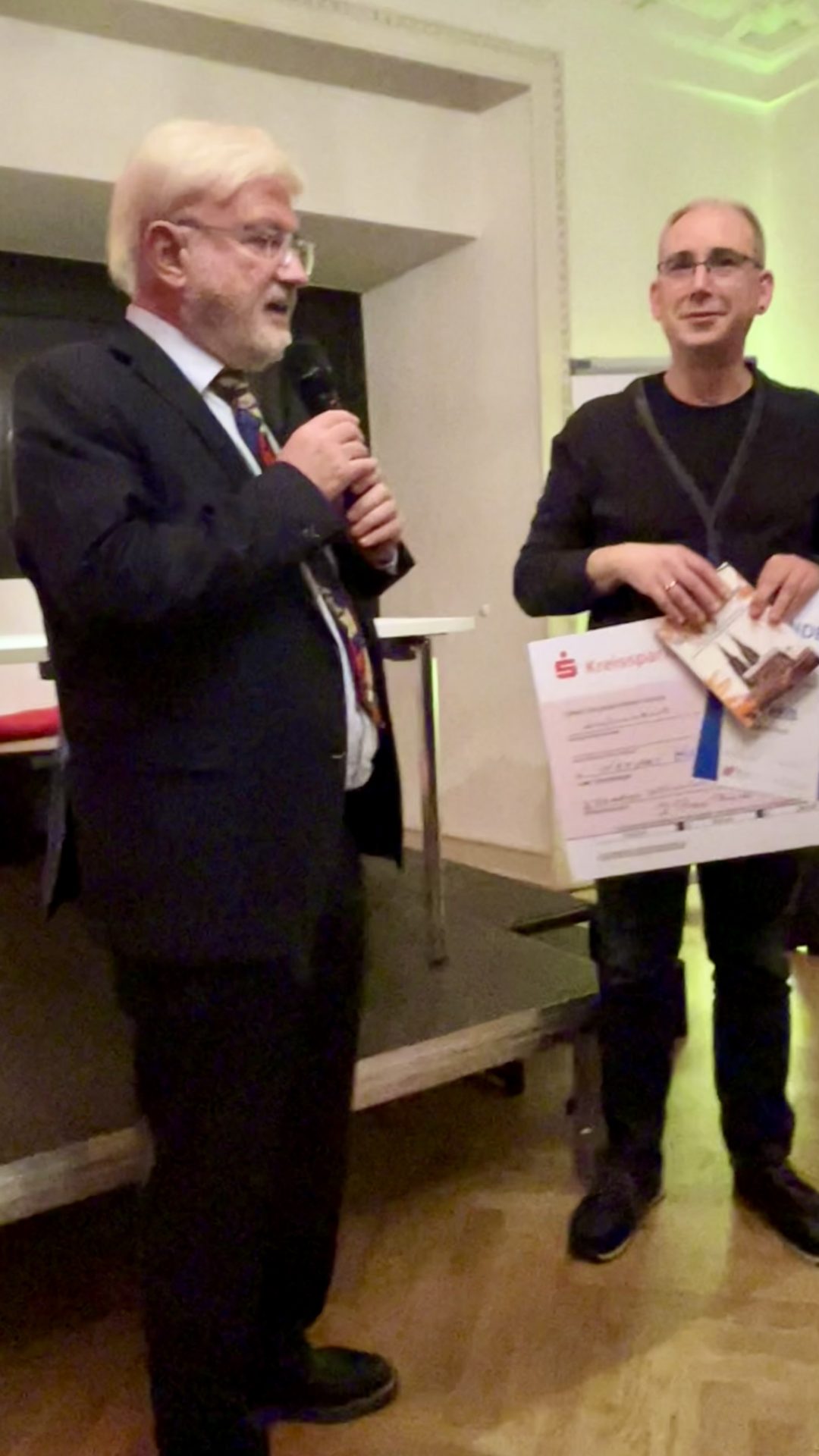 Mit typisch kölschem Sarkasmus und einem Augenzwinkern nahm Hans Schumacher in seinem „Handicap-Leed“ den Driss des Alterns auf die Schippe und belegte Platz zwei in der Kategorie Lyrik, Platz drei machte das Gedicht „Heim zo ihrem Mann“ von Harald von Bonn, in Abwesenheit vorgetragen von Klaus Jansen, das mit starken, kurzen Sätzen die Sehnsucht nach dem verstorbenen Lebenspartner thematisierte. Platz vier ging an Sandra Dorlöchter, die die Zuhörenden mit ihrer gefühlvollen, sehr persönlichen Ballade „Sulang mer uns noh han“ über das Leben mit ihrem an Demenz erkrankten Vater berührte.