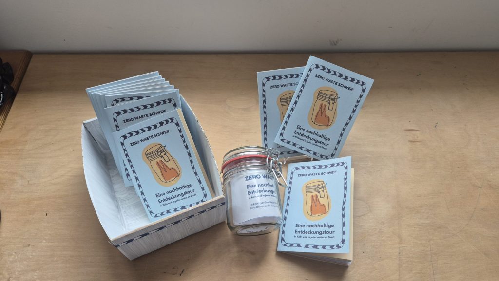 Nachhaltig durch die Stadt spazieren, besondere Orte im Veedel aufspüren, sich treiben lassen, Müll einsammeln und umweltfreundliche Angebote erkunden. Darum geht es in der Broschüre „Eine nachhaltige Entdeckungstour“, die gemeinsam vom Kölner Verein Zero Waste und dem Kollektiv „Die Schweiferei“ entwickelt wurde. Die Rembold Stiftung hat die Produktion der Broschüre mit 4000 Euro gefördert. Ein Team von drei kreativen Frauen hat das handliche Heft entwickelt: Pia Wroblewski vom Verein Zero Waste Köln sowie Kathrin Gölz und Lisa Herbst, Gründerinnen von „Die Schweiferei“ und Autorinnen zahlreicher weiterer Schweif-Hefte.